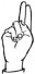 На ћирилици написано РУМЕНА ВУЛЕТИЋ састоји се из 13 слова [?]. Исписано ћириличном једноручном азбуком за глувонеме:
